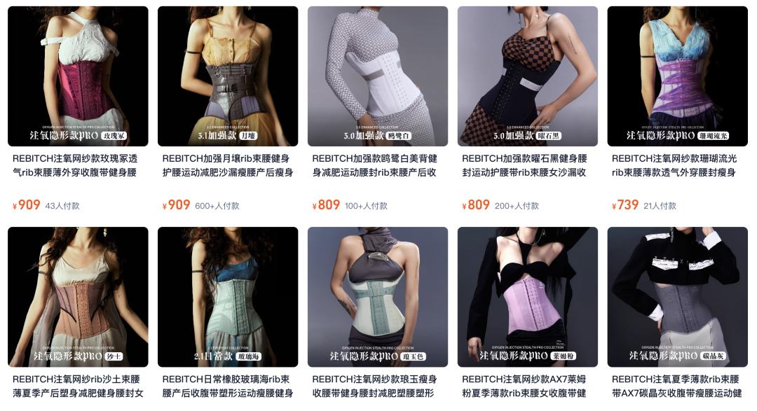 与此同时,也有一些品牌向更高更贵的价格带试探,比如与矫姿带功能相近的束腰品牌Rebitch,号称是“高端原创定制运动塑形绷带品牌”,其卖点是“天然健康橡胶”和“19根记忆钢骨”,定价更是高达719元到1059元之间不等。