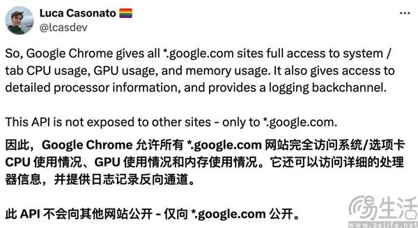 日前,一位名为@lcasdev的开发者在检查Chromium的源代码时发现了一个让人意外的事实,那就是谷歌方面在Chromium里预留了私有API,使得谷歌旗下网站得以读取用户的大量PC硬件信息。
