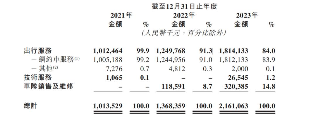 其中23年营收中,84%来源于网约车服务。这部分收入为18.14亿。23年总收入是21.61亿。