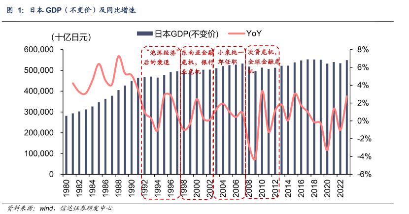 「平成景气」后,日本迎来泡沫经济的破灭,进入了「失去的二十年」,在这期间,日本的实际 GDP增速 CAGR 仅为 0.44%。