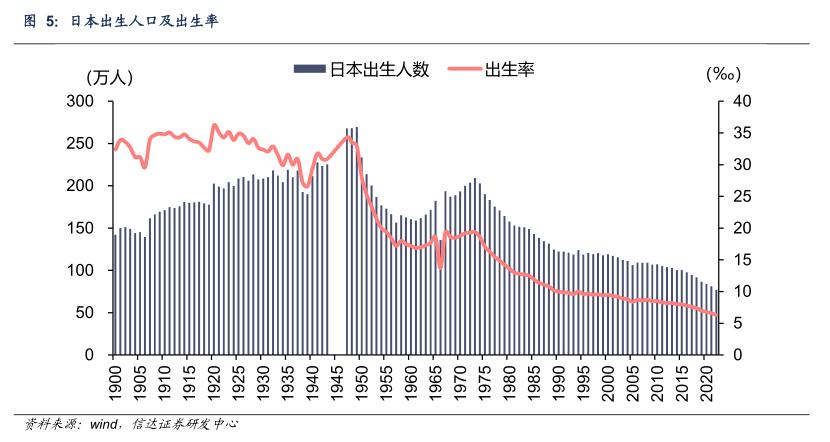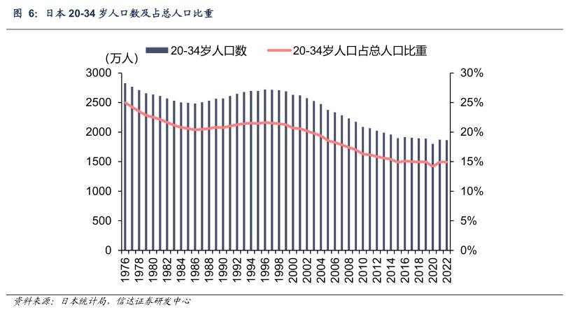 出生率下滑已久,年轻人数量减少。日本出生人口的两次高峰期分别是在二战后的 47~49 年(团块世代)和 67~75年(泡沫世代和团块次代),74 年开始出生人口持续下滑,进而带来 98 年开始 20~34 岁的年轻人群体人数开始下滑,这个趋势正好与 99 年后公务员申请人数趋势相符。因此我们认为,人口结构变化,即年轻人数量下降直接影响公务员申请人数。