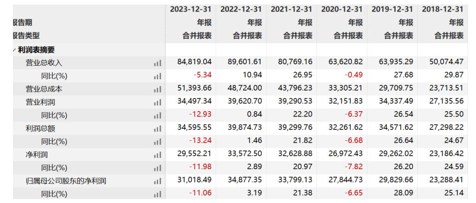 2023年,我武生物的营业收入约为8.48亿元,同比减少5.34%。归属于上市公司股东的净利润约为3.1亿元,同比减少11.06%。基本每股收益为0.5924元,同样减少了11.06%。