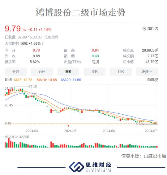2024年1月,鸿博股份公告,预计2023年营业收入约8.5亿至9.98亿元,归母净利润3740万至5610万元,扣非净利润2840万至4260万元。