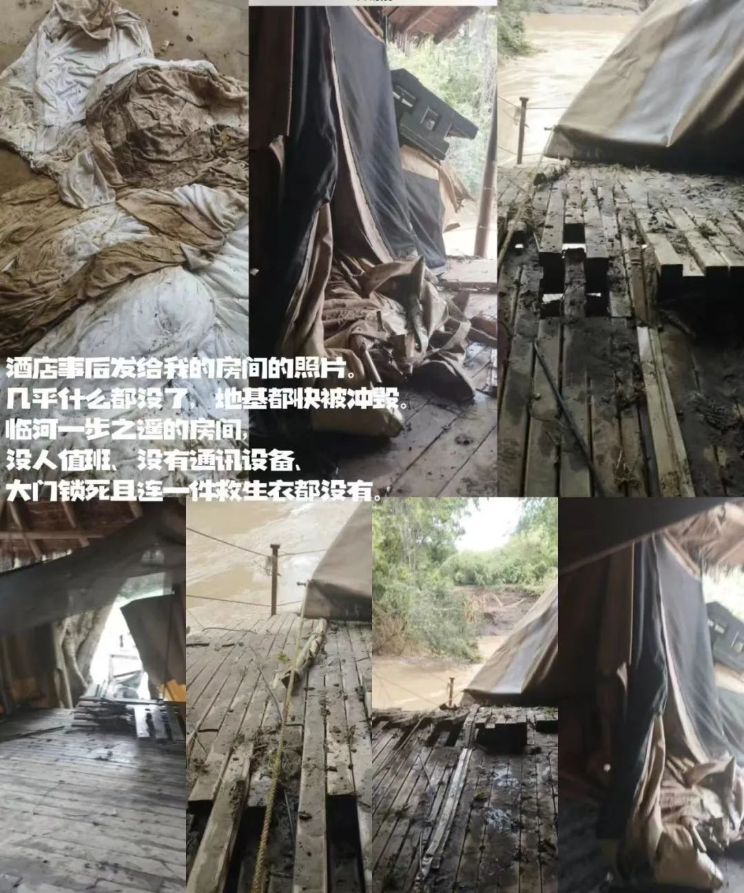 “当河水暴涨起来,酒店当天关闭了河边餐厅,为什么还把我安排到地势最低、靠近河流反弓处的房间?为了多开一个房间多赚一分钱?这跟谋杀有什么区别?”带着连串疑问,刘珈图在社交平台上发布帖子,质疑酒店存在严重的管理和应急漏洞。