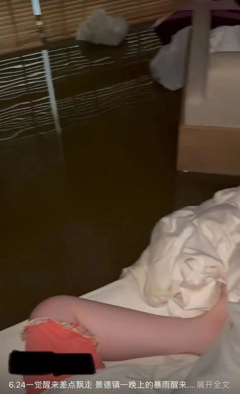 在暴雨洪水面前,都市人设想的悠闲假期转瞬就泡汤。栩冰本想带女儿去江西景德镇玩一天,却碰上江西北部的暴雨。6月24日,洪水漫入了栩冰的酒店房间,半夜涨到距离床面一个手掌,连房间的沙发也漂了起来。她发视频慨叹:“一觉醒来,差点漂走。”