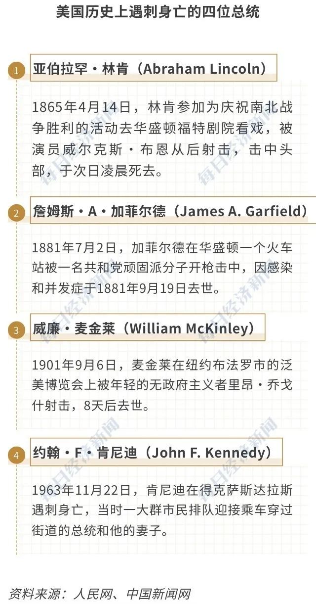 回顾历史,美国总统遇刺几乎成为一个传统诅咒。每经记者梳理发现,美国历史上有多位总统曾遭遇暗杀,其中有4位因此丧生。美国第16位总统亚伯拉罕·林肯是美国第一位遇刺身亡的总统。