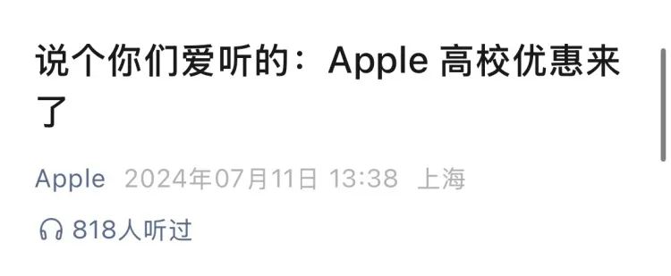 苹果教育优惠活动文章标题为《说个你们爱听的:Apple 高校优惠来了》,这本是非常口语化的表达,但放在这里,就好像是一个人在和你聊天。