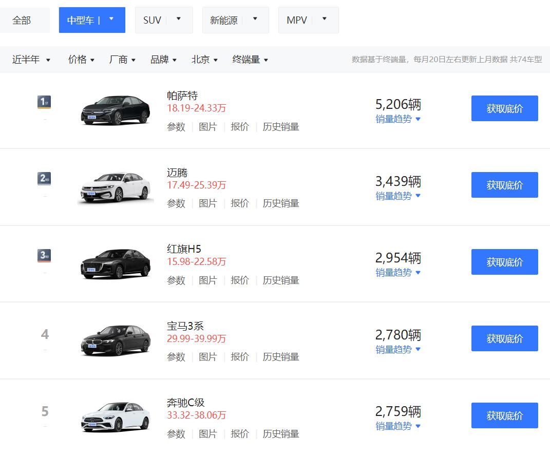 隔壁的兄弟车型帕萨特就更夸张了,半年卖了 103034 辆,同比上涨 31.2% ,两兄弟在中型车销量榜上一个第四,一个第一,简直杀疯了。