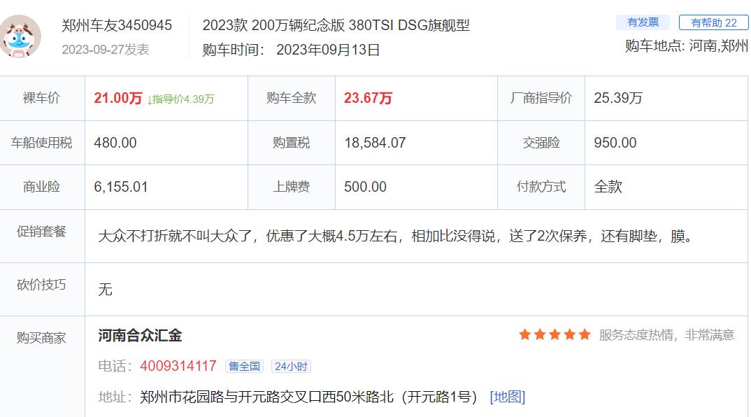 回看 23 款的价格,顶配 380 指导价 25.39 万元,现在价格战打那么厉害, 24 款指导价只降了 7000 。虽然终端可能会有 2-4 万浮动的优惠( 参考 23 款 ),但是消费者还得去 4S 扯皮,麻烦。