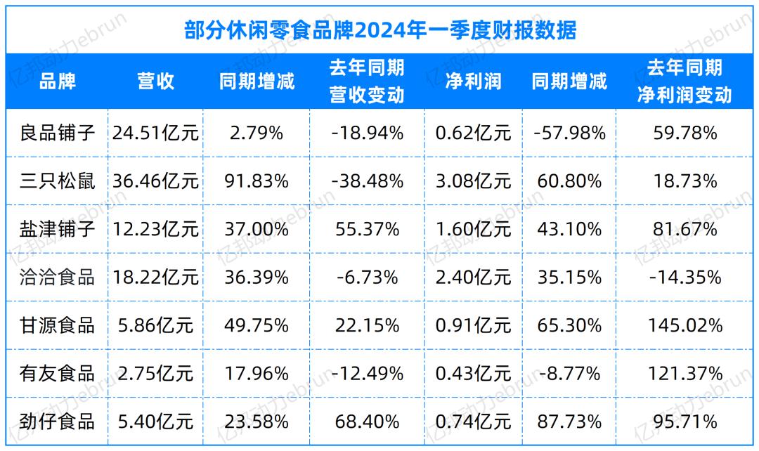 但从其他休闲零食上市品牌的一季度财报来看,不同品牌之间的净利润表现差距较大。