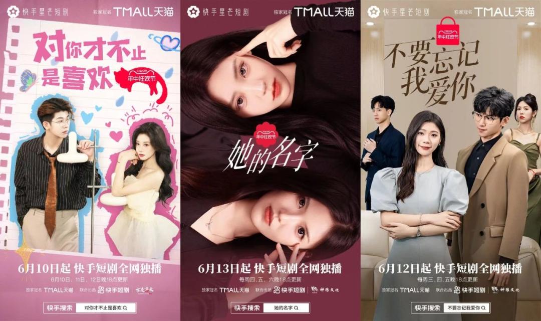 同时,在前不久的618期间,快手也集中上线了一批品牌定制短剧,既有天猫冠名赞助的《对你才不止是喜欢》《她的名字》《不要忘记我爱你》等多部定制达人剧,也为京东定制了短剧《重生之我在AI世界当特工》,还在快手商城推出“618上头剧场”并上线了《重生之真假千金的周末家宴》等短剧,在提供内容价值的同时,也为品牌和平台带来了可观的商业价值。