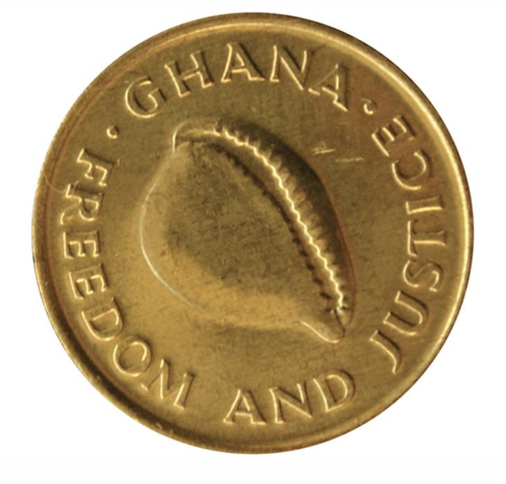 西非国家加纳发行的货币,上面的图案正是货贝(图片来 源:reddit.com)