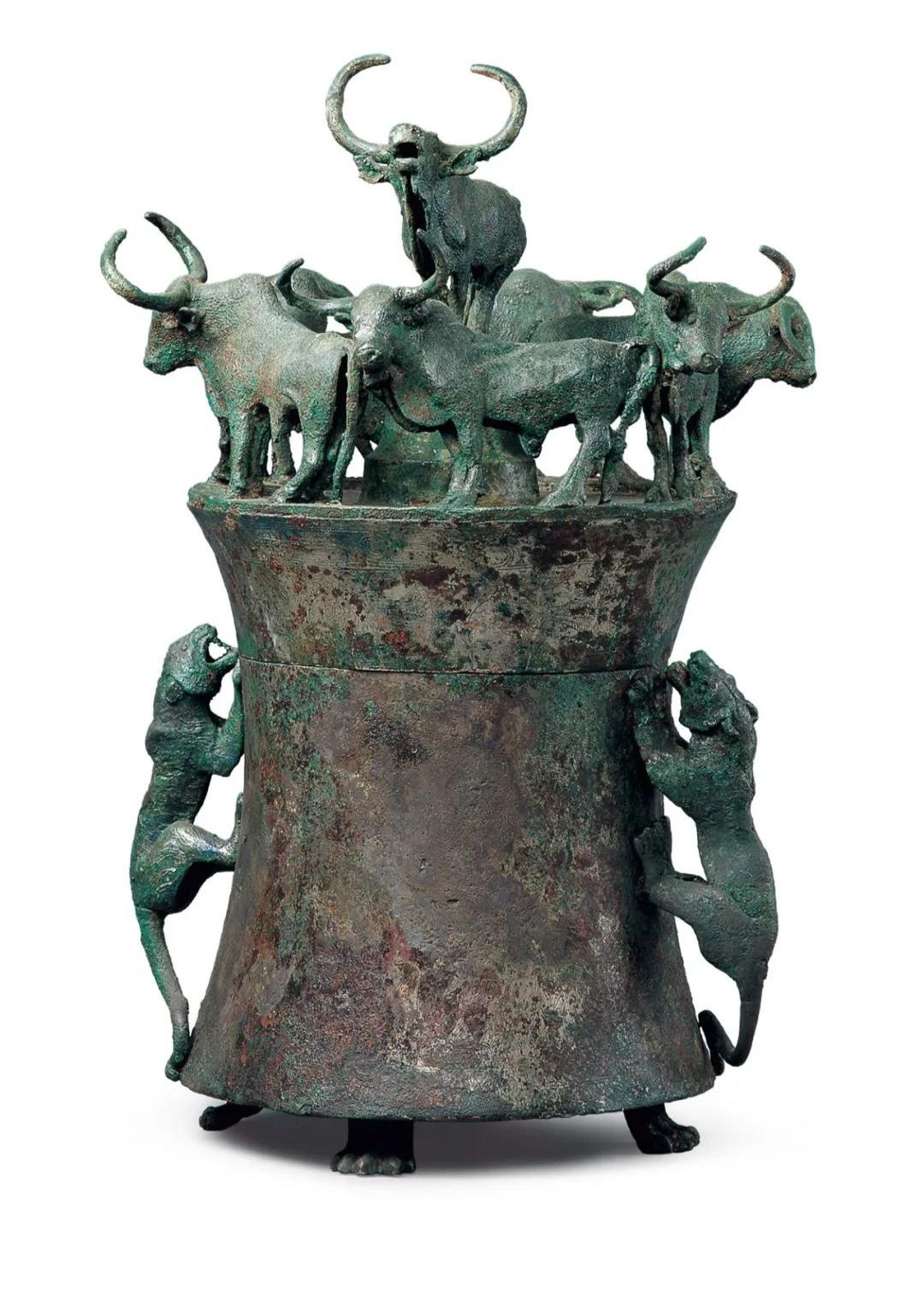 出土于云南的七牛虎耳青铜贮贝器。云南使用贝币的历史,最晚延续到了清朝初年(图片来源:中国国家博物馆)