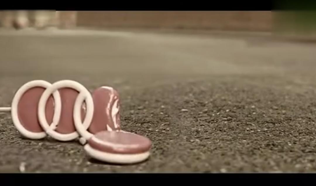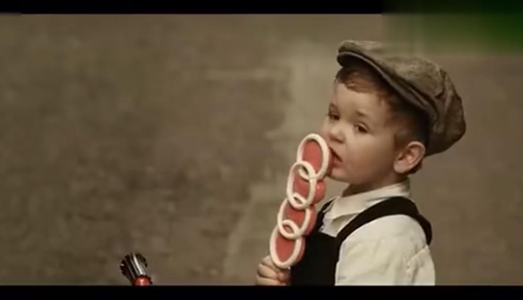 最后一个更直白了,让小孩舔着一块奥迪车标形状的棒棒糖不说,最后奔驰车炫技结束后,小孩也不见了,棒棒糖直接碎成两半躺在地上。