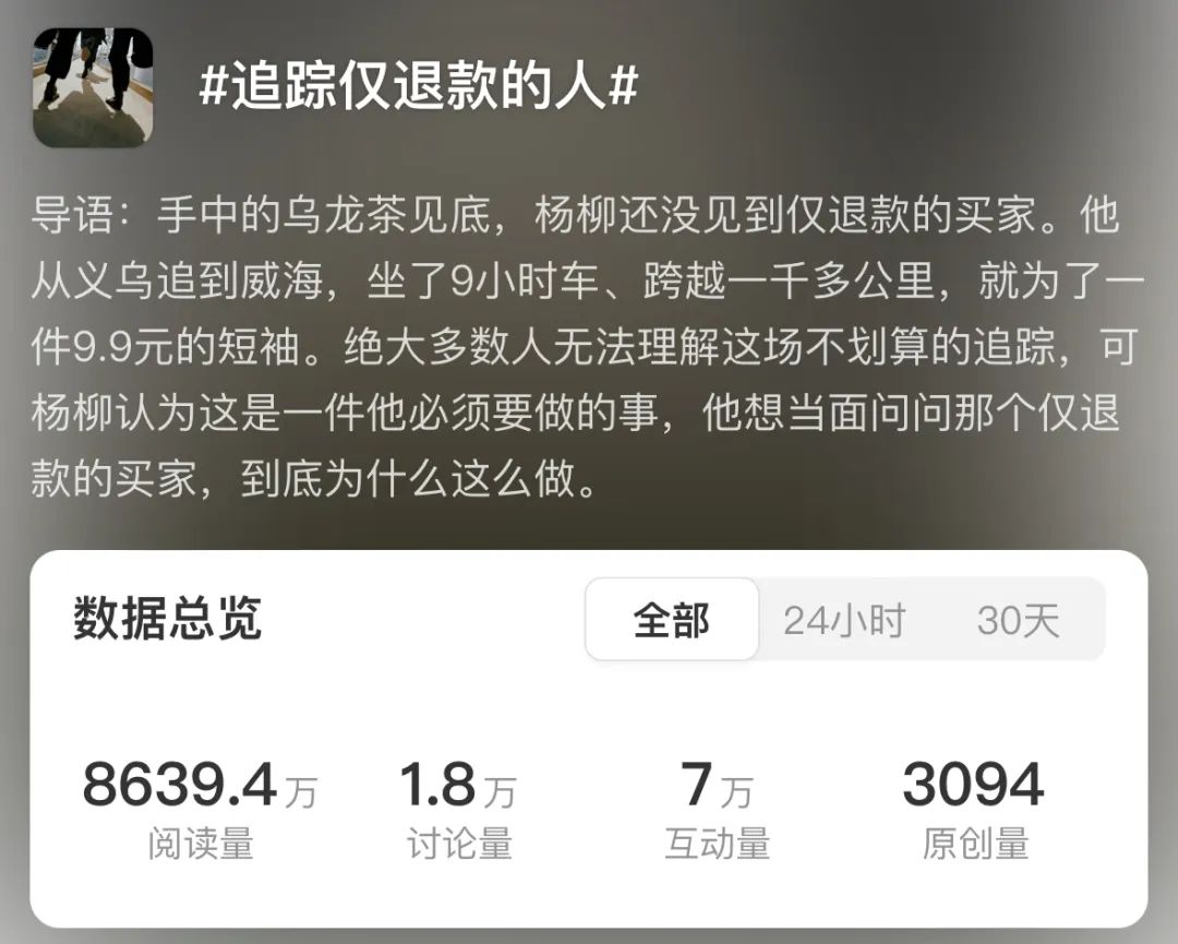 可惜!这并不是一个爱情故事 ,而是一个商家为了找到一位用了“仅退款”服务退回9.9元的买家。