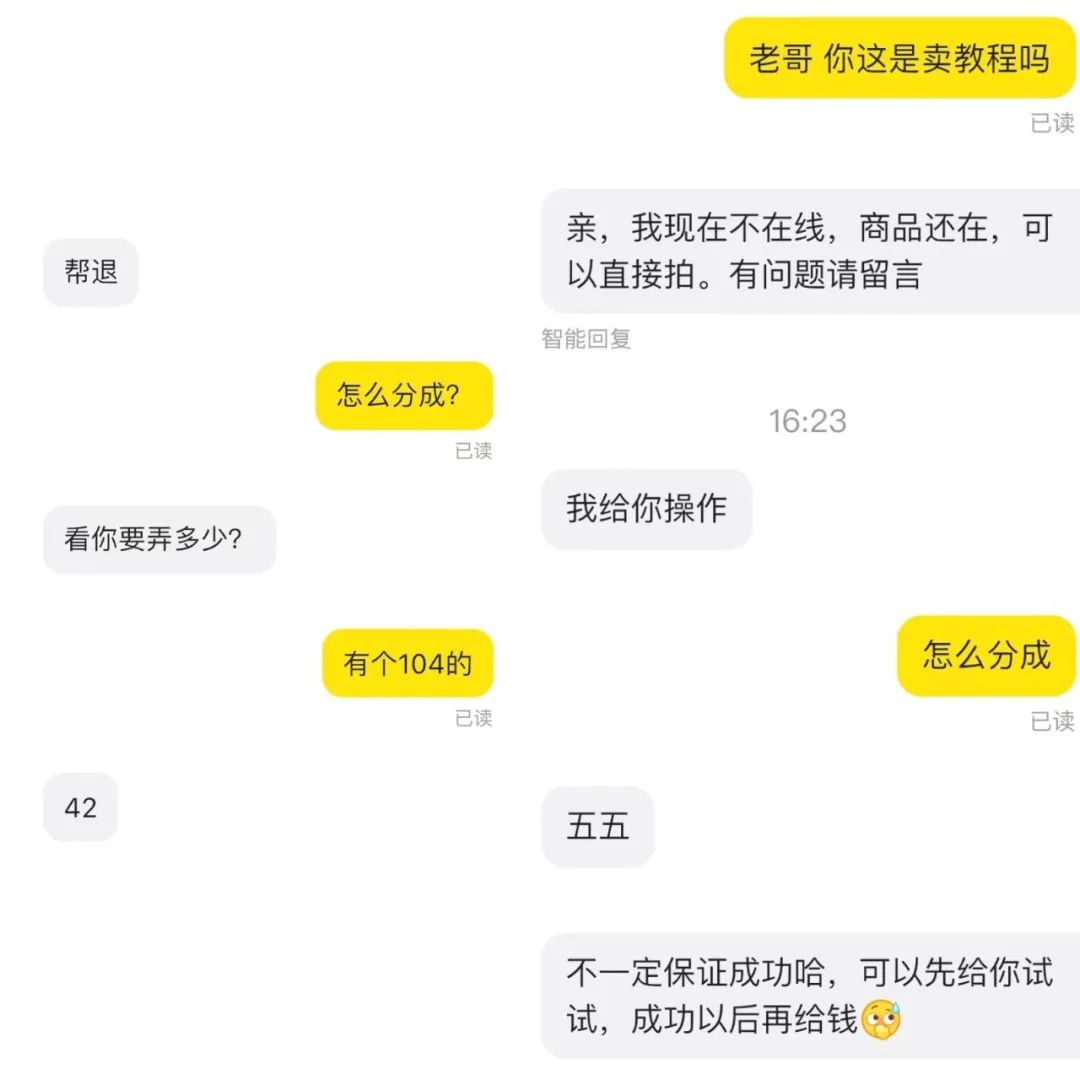 随机询问了俩家,都表示这是帮你退款,钱到手之后咱们几几分成。