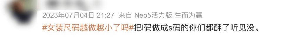 2023年以来,已经有许多声音,开始吐槽女装尺码小这一现象。