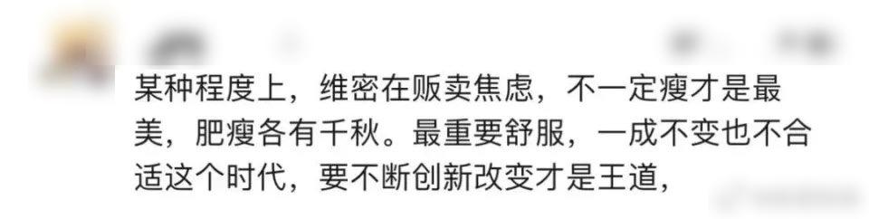 而与其说维密的转变,是一个品牌从性感到舒适的品牌定位更迭,不如说是如今女性的审美变迁历程。