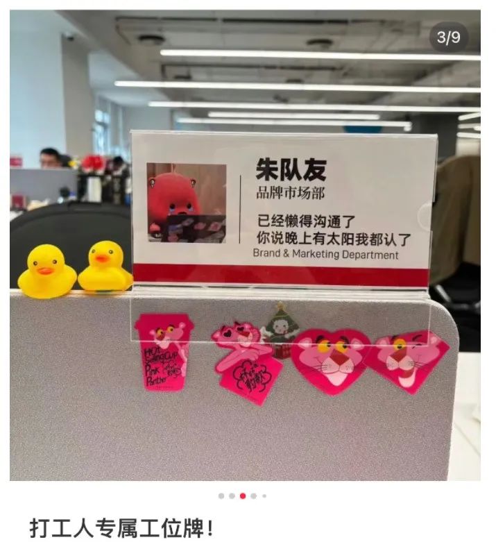 有品牌市场部的员工,将自己的名牌改为“朱队友”,并称“已经懒得沟通,你是说晚上有太阳我都认了”,表达出对职场中部分同事的无奈之情。