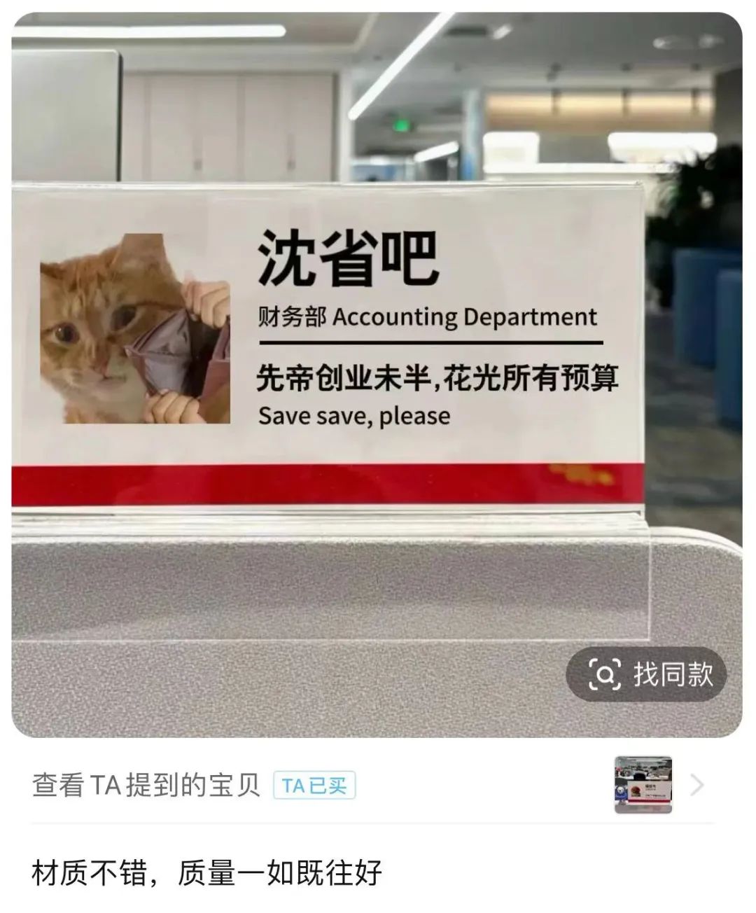 还有网友,利用00后实习生的“松弛感”,为部门安排上“吴法为您服务”“张工资” ,配上一些表情包,形成每个员工独一无二的工位牌。