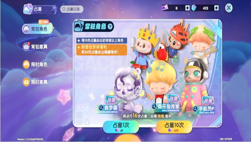 当然,在“模拟经营+派对玩法”之外,《梦想家园》最大的独特性在于其结合了泡泡玛特旗下多款盲盒角色,比如Dimmo化身为了“占星师”,提供游戏线索;在种田环节,玩家可以通过获取拥有不同技能的潮玩伙伴来提升效率,比如“Molly下雨”能够批量化完成浇水、“Molly种植”则能够批量播种……