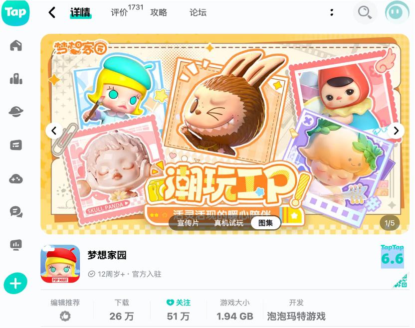 6月27日,在几个月的测试结束后,泡泡玛特首款自研手游《梦想家园》也终于上线。