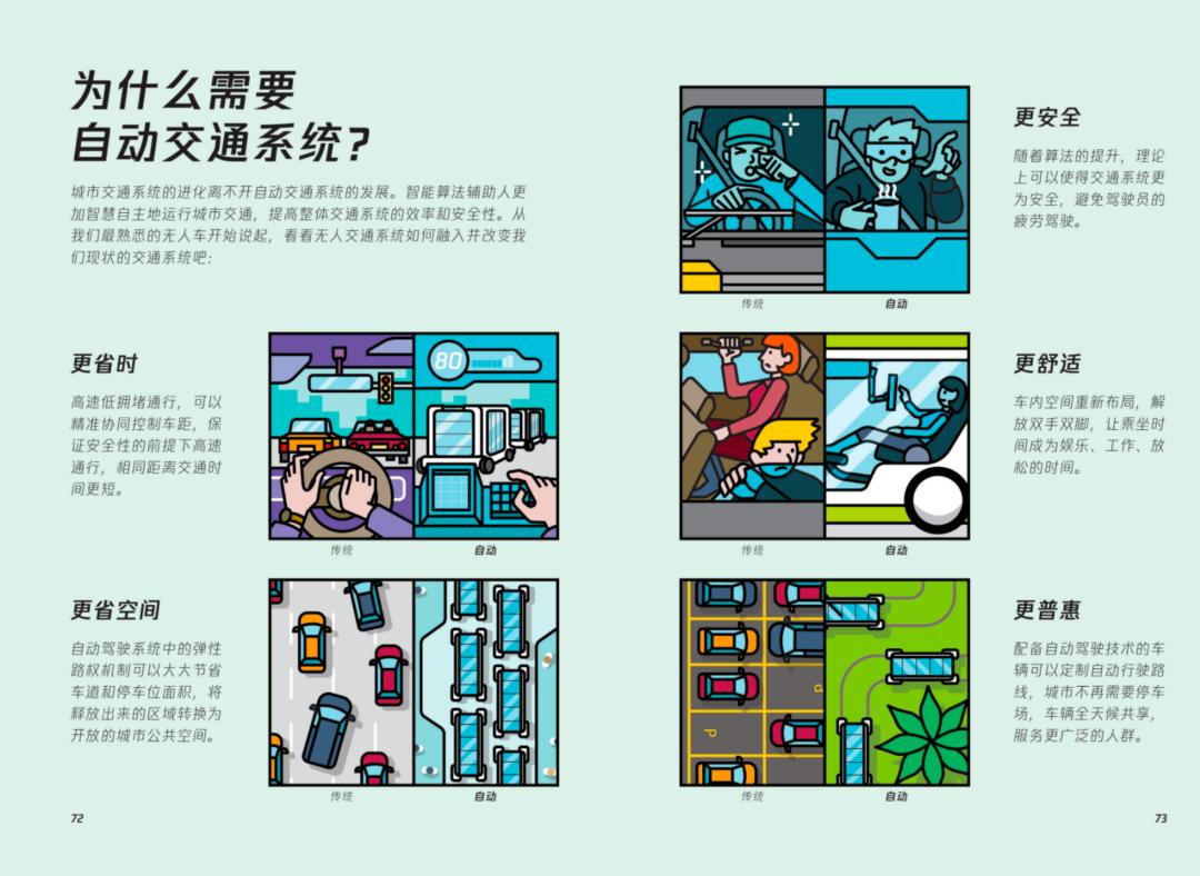 自动驾驶带来的冲击,其实只是技术变革背景下“人-机-环境”关系变革挑战的一个缩影。对于未来,有太多的不确定性。新技术和社会与环境适配,是技术落地的前提,需要对场景的创造性想象。比如自动驾驶汽车直接放到为人类驾驶设计的道路上,就像当年汽车跑在马车路上,要限制到比人还慢的速度。因此,我们提出了未来城市概念,以及“人、机、环友好”理念。在我们和帝都绘一起创作的《未来城市说明书》(请在微信读书阅读)中,相信你可以获得更多启发。另外,腾讯研究院联合腾讯Robotics X实验室、腾讯基建、清华大学未来实验室、清华大学无障碍发展研究院和帝都绘、机器人大讲堂编制完成的《人机友好空间探索》在7月8日研究院主办的AI&Society论坛发布。在研究中,我们建议打造人-机-环友好体系,让机器人和环境更好的“双向奔赴“,最终目标是推动更好地为人服务。