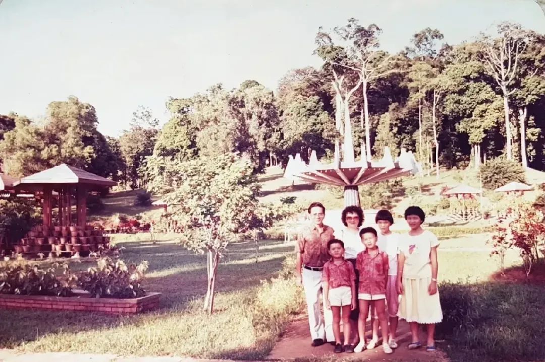 1984 年,路胜创始人兼首席执行官陈民汉(前排右)与父母、两个姐姐和弟弟陈民亮一起度假。图片来源:COURTESY OF MIN-HAN TAN