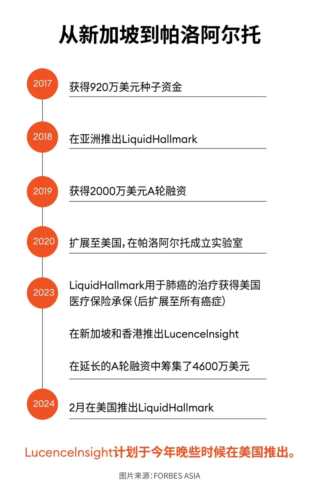 在本土市场发挥其优势将是一个良好的策略。德加涅说,“亚洲有巨大的市场,如果他们在那建立起领先地位,那对他们来说就是一个巨大的市场机会,”为此,路胜正在加大力度推广其多癌早期检测测试LucenceInsight,该产品目前已在亚洲和中东地区的几个市场上市,并计划在今年晚些时候在美国推出。陈民汉表示:“这是下一个理所应当的举措。”他声称这是首个在东南亚销售的同类检测产品。