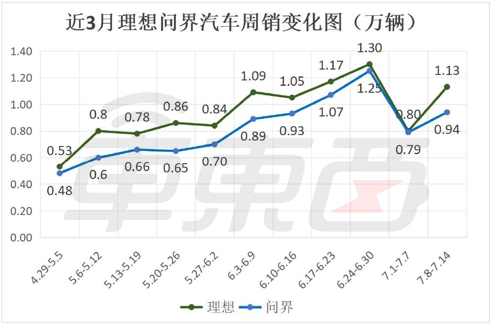 02.理想周销过万上涨四成,问界过万难被拉开1900台
