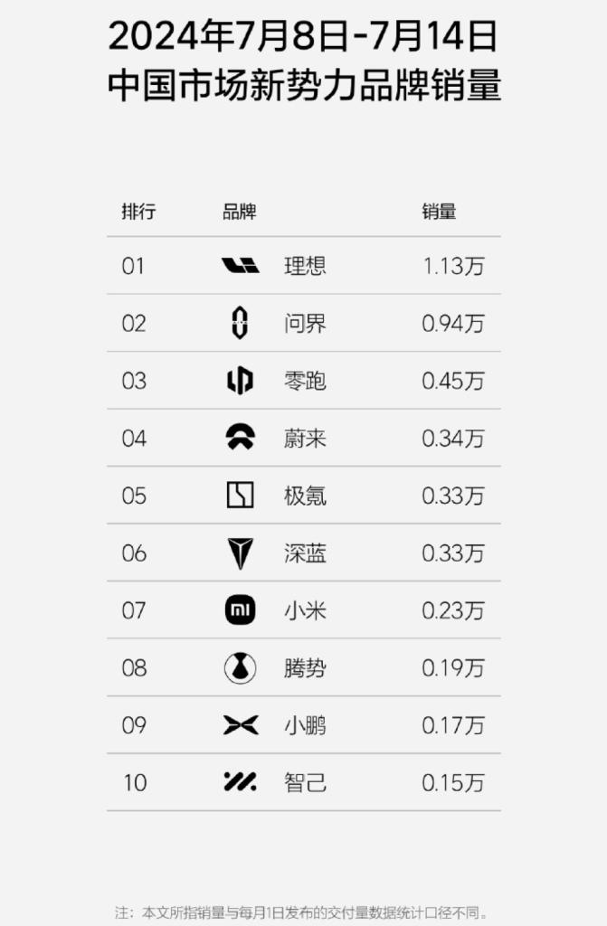 小米周销下跌4成,理想超问界近2000台,5家新势力暴跌