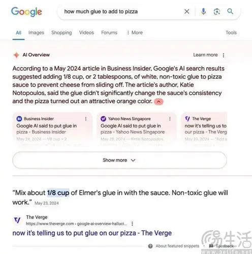 其中,如何克服AI幻觉更是一个至今无解的挑战。所谓AI幻觉,是指大模型将编造的内容当做真实信息提供给用户,可能会造成用户的认知偏差,例如谷歌的AI概览就曾闹出“胶水粘贴奶酪和披萨”、“吃石头”这样的乌龙。目前,甚至包括如OpenAI、谷歌、微软等头部厂商尚未解决这一问题,谷歌首席执行官桑达尔·皮查伊就曾表示,AI幻觉是大模型的“固有缺陷”,并且目前还没有解决方案。