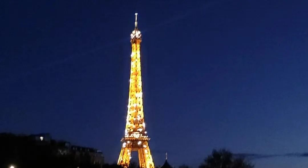 司机全程没有说话,车里放着法语歌,很大声,压过车外的雷声和雨声。几分钟后,车突然靠边停下,离目的地显然还很远,我们不得不警觉起来。直到我们向车窗外望去,才猜到了司机的用意。接近11点,远处的埃菲尔铁塔开始闪烁,银白色的碎光,打破巴黎的雨夜,闪电不及它耀眼。