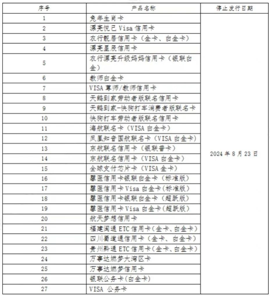 多家银行公告,这些卡停发