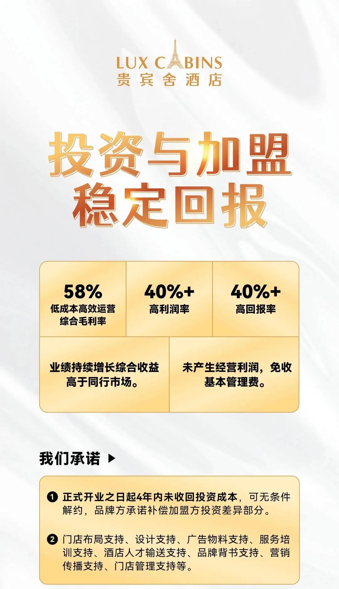 据其官网介绍,贵宾舍酒店目前有加盟三大承诺: