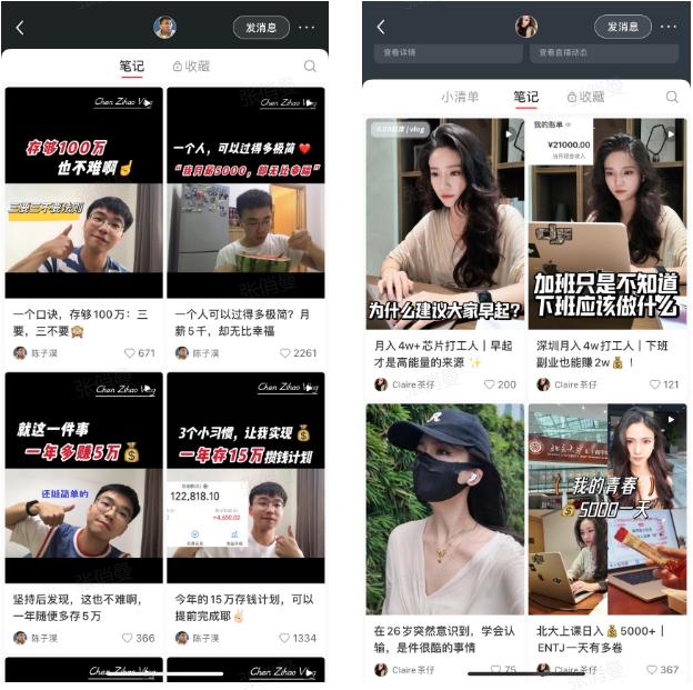 Claire茶仔个人简介里两次提到自己的“打工人”身份,而“陈子淏”自称“社畜”。他们的笔记风格和“离职”这个词在当下语境所暗示的“松弛感”毫无关系,更多是“拼命搞钱”的能量感。