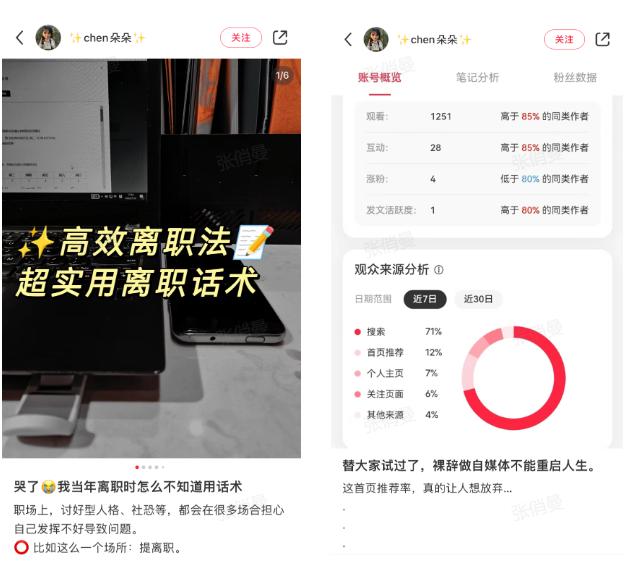 这条笔记在拥挤的离职博主洪流中,宛如一条清流,很快引发了大批底部小博主的共鸣——