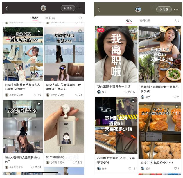 事实上,对于他们而言,只有在离职的那一天、彼时爆的那一贴,他们才称得上“离职”博主,之后的他们,都自发分化为失败/成功的旅游博主、失败/成功的vlog博主、失败/成功的美妆博主等。