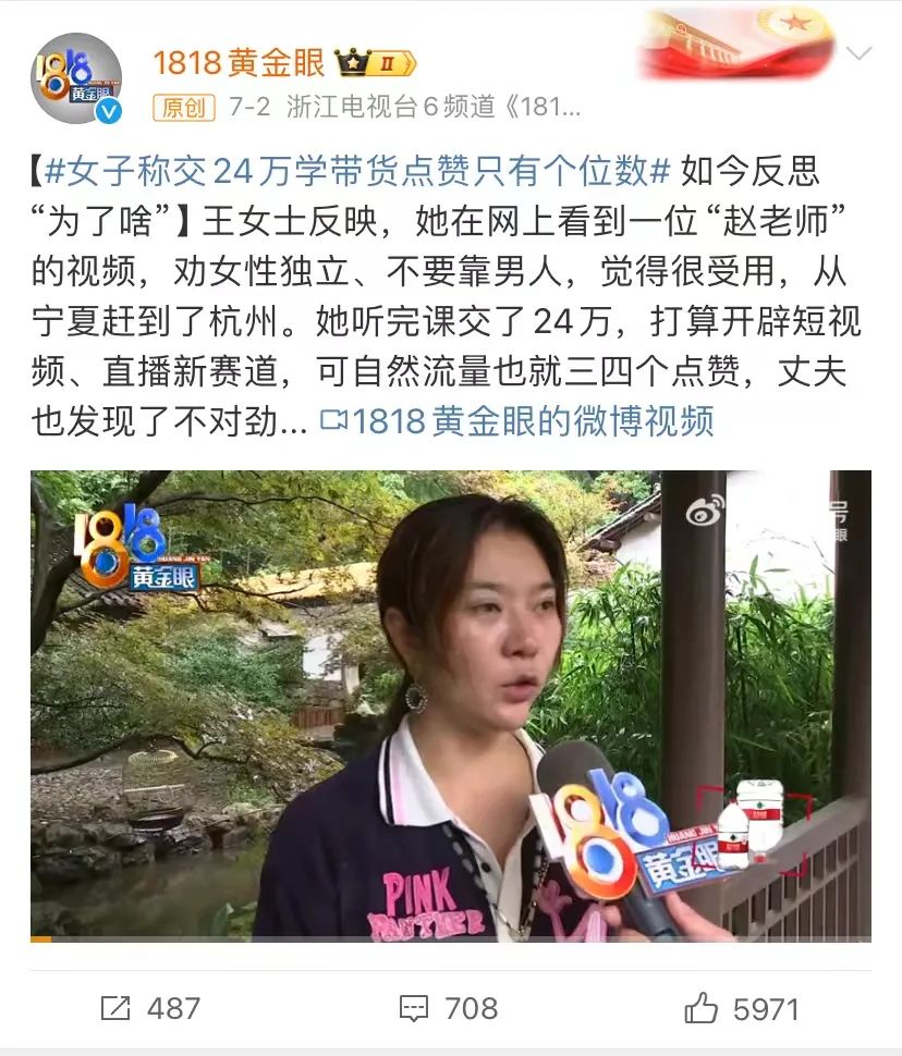 前段时间,官媒1818黄金眼就打假了某自媒体培训。“交24万学费,点赞只有个位数”,一心想着“独立”,结果被割完韭菜的粉丝满脸问号。