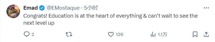 Stability AI前CEO Emad Mostaque说:“祝贺你!教育是一切的核心,我迫不及待地想看到它更上一层楼。”
