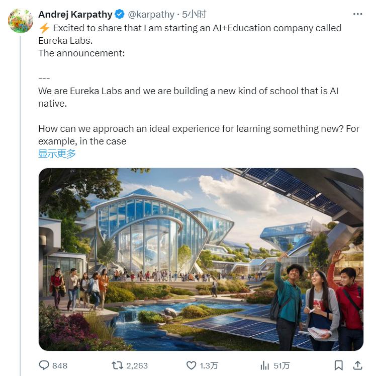 智东西7月17日报道,今天凌晨,OpenAI联合创始人、前特斯拉AI总监Andrej Karpathy宣布重磅消息:他创办了一所AI+教育公司Eureka Labs。