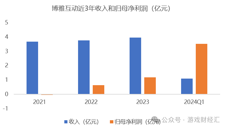 2024年第一季度,博雅互动收入约1.085亿元,同比增长14%,归母净利润约3.52亿元,同比增长超10倍!