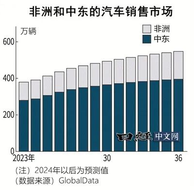 对非洲和中东新车市场本身增长也有期待。在非洲,由于收入水平较低,廉价的二手车普及,但随着经济增长,新车销量的增长空间较大。调查公司GlobalData的数据显示,2023年非洲的新车销量为99万辆,预计到2036年将增长53%,增至152万辆。