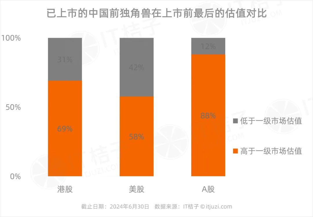 在美股上市的中国前独角兽有 59 家,其中,有 58% 独角兽公司在港股上市的首日估值大于上市前最后一轮融资的估值,另有 42% 小于一级市场的估值。