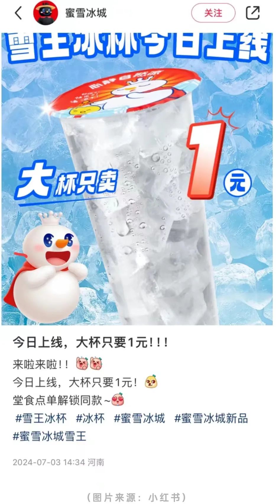 7月3日,蜜雪冰城在其小红书账号发文表示上线了只卖1元的雪王冰杯,随即受到消费者的抢购,有的消费者甚至购买十几杯冰杯进行囤货;但随后因供应不足等原因,不少门店下架冰杯,大量消费者跑空。