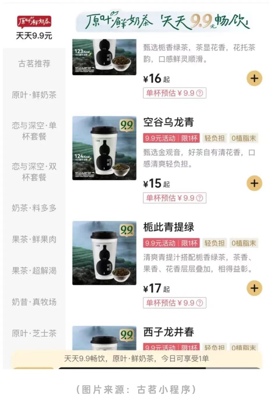 自去年瑞幸推出9.9元低价以来,被价格战卷到的不仅是直接竞争对手库迪,CoCo、古茗等茶饮品牌也纷纷进入了9.9元价格带,针对部分单品推出了天天9.9元的优惠活动。