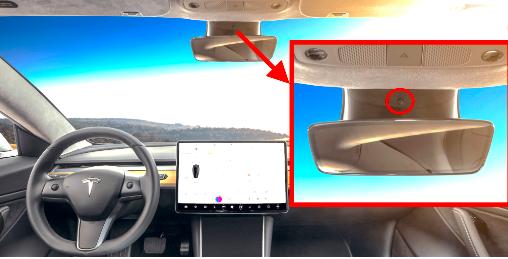 特斯拉监控驾驶者的摄像头,藏在后视镜上方丨electrek.co