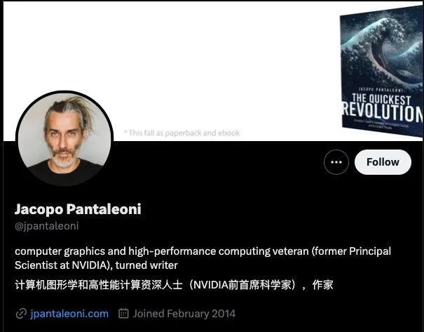 很多朋友可能没听说过 Jacopo Pantaleoni 的名字,但或多或少应该见证过他的工作成果。Pantaleoni 的专长是将数据转换为图像,作为首席科学家在英伟达供职期间为其开发了旗舰产品的图形处理单元。他的工作帮助塑造了超现实的数字图像世界,进而构成了从电子游戏到电影艺术、再到作为 DNA 测序研究核心的生物信息学的一切。除此之外,他的贡献对于 AI 革命同样意义重大,支撑起 OpenAI 及其他从业企业开启了这个前所未有的时代。
