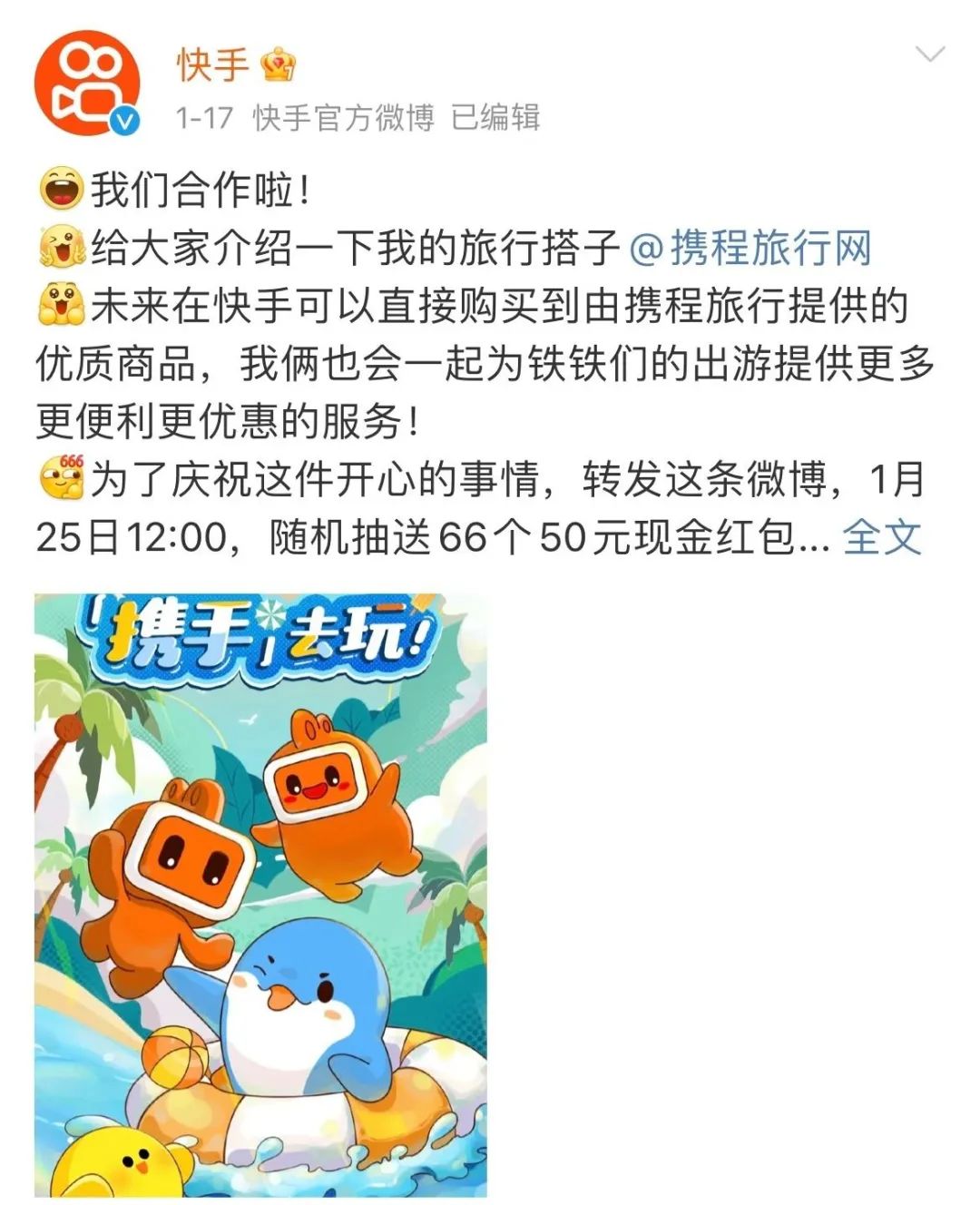 此后几年,快手用同样的合作方法,把国内主要的酒旅平台都合作了一圈,先是去哪儿网、美团,2024年1月,又与携程牵手。
