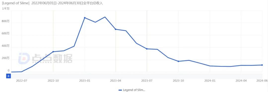 「Legend of Slime」月流水曾一度逼近 900 万美元,但目前已经下滑到 113 万美元 | 数据来源:点点数据